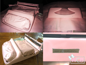 I found this 1950-something blue consul typewriter on eBay from an antiques shop for less than $40, and since it’s a local seller I was able to arrange for pick-up instead of paying for shipping! “But, it’s blue!” you may say, and you’d be right… Except for the fact that I turned this into a crafting opportunity π I’m turning this bad boy pale pink with the help of some spray paint!