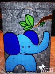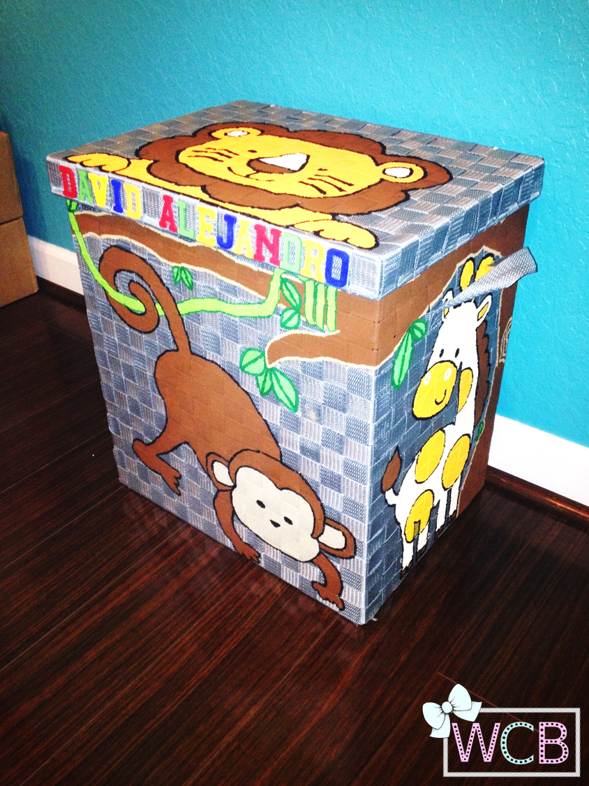 Before my gorgeous and perfect little monster David Alejandro was born, my mom wanted to get him (among other things) something that could be used in his room and that could last him a long time. We were at Michael’s one random Sunday, and stumbled upon a plain blue knit style chest in the basket section, which my mom thought would be useful for anything. She gave me the “can you do something with this?” look, and my eyes lit up. I went over to the paint section to buy a few colors to add to my stash, and we barely made it out of the car before I started working on it.