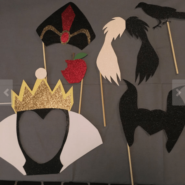 As you all should know by now, I’m obsessed with everything Disney. So when the Descendants Movie came out, I was front row (to my TV) ready to watch it and fall in love with yet another new classic. It worked. I did. I died. And then, a customer saw my standard set of Villain-inspired props, and asked if I could make her some Descendants villain props. I already had 3 out of the 4 parents (Evil Queen, Jafar & Maleficent) designed from prior sets, so I got to work and drew out the last parent (Cruella), plus the 4 children: Evie, Jay, Mal & Carlos. I’m pretty proud of how they turned out, and I’ve already received a few orders for the set. So you can imagine, that when I see someone copied my design to the T, I’m a little bit flabbergasted. Let me show you what I mean:
