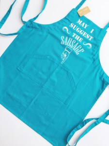 - The edgy fun part: when it comes to Michelle’s family, there’s always something fun/edgy/borderline inappropriate thing happening, and I’m all too happy to oblige and do my part for it. This time around, Marta bought an apron for Michelle’s uncle as he’d be cooking the dinner during the party, and again, thank you Pinterest for this awesomely hilarious idea 🙂