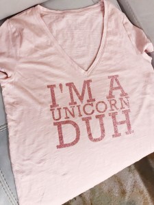 My bff wanted to keep it simple but cute, so she decided she wanted to be a unicorn, but like the chillest unicorn ever. Horn from amazon, and a shirt by yours truly that said “I’m a unicorn, DUH” for anyone who dared ask. Done.