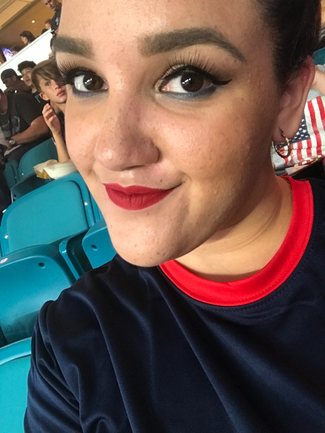 I decided to do a themed makeup for a Clasico game between the Real Madrid and Barca teams when they came to play in Miami. As a Barca fan, I wanted something blue and red on my face. I took my time with it and kept it simple and *gasps* attempted to apply fake lashes and I DID IT! I felt like the prettiest girl in that whole stadium that day. I was super over made-up, but I felt so accomplished!